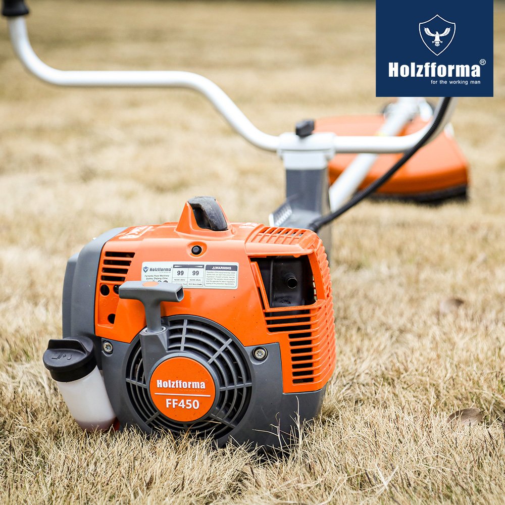 Holzfforma Brush Cutter FF450 A powerful 2-stroke brush cutter designed for high performance, making it highly effective for cutting grass, dense vegetation, and even small forestry tasks. Equipped with a robust 2-stroke engine, it delivers outstanding performance and reliability.