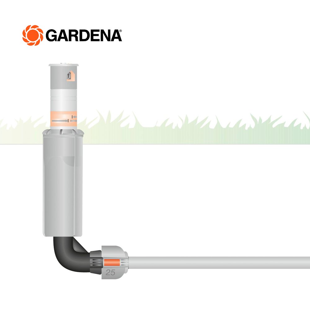 As part of the GARDENA Sprinklersystem – the GARDENA L-piece 25 mm x 3/4" male thread can be connected with different sprinklers at the end of the pipe.