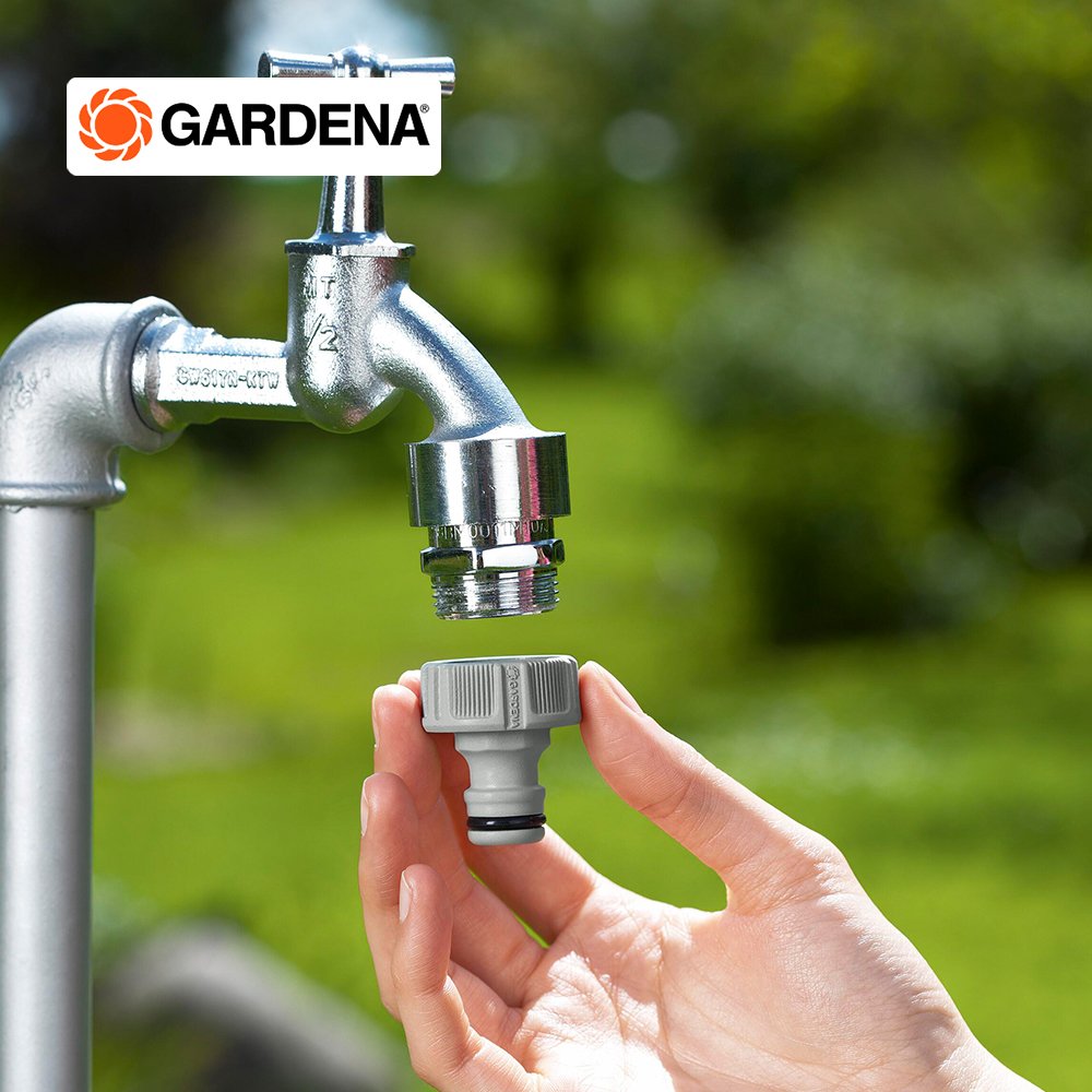 The GARDENA 21 mm tap connector safely connects a garden hose to the water tap. Thanks to the practical Anti-Splash function, which focusses the water flow, ensuring that it does not splash when you are using the tap. The tap connector's grip component makes attachment to the water tap simple and it is easy to tighten. Everything fits together perfectly and remains watertight. Using the original GARDENA system's range of products, any connection devices can be connected to the hose. The tap connector is frost-proof and particularly durable. Made in Germany. The original GARDENA system.