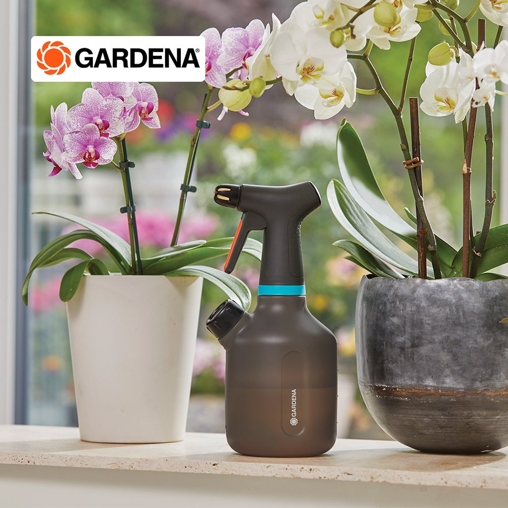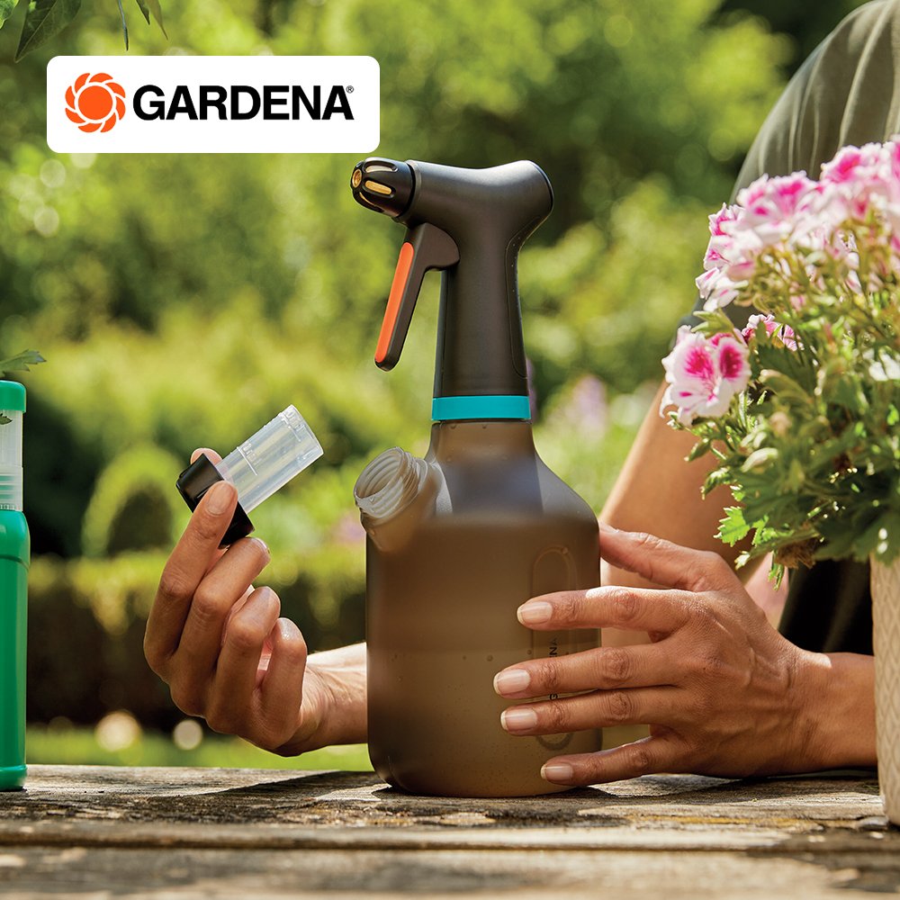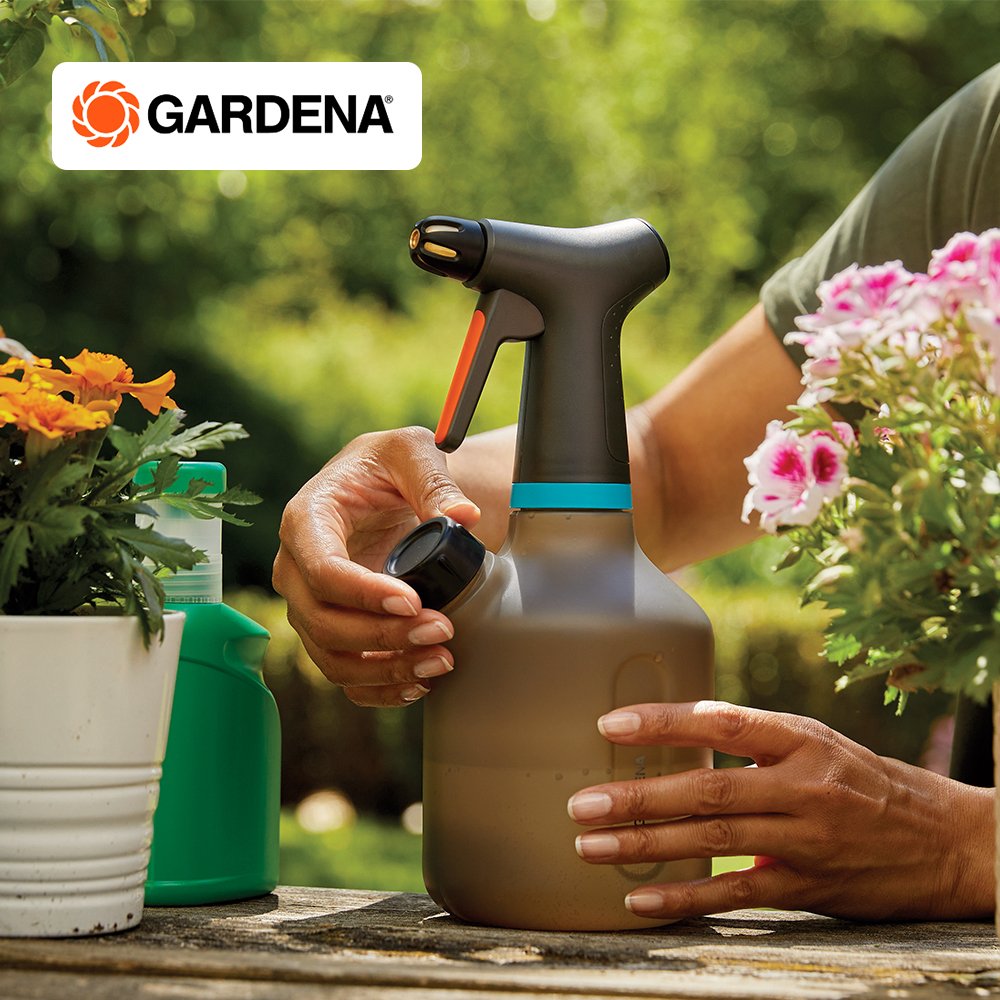 The Pump Sprayer 1 litre from GARDENA has many great features that will help you water your plants and flowers in your house and garden. For example, the additional opening with measuring cap offers you a successful 3-in-1 function. Through this second opening you can easily fill the pump sprayer, add the correct dose of fertiliser and empty it again. No need to unscrew the pump head, which keeps your fingers dry. When you are using the sprayer, each press of the handle produces an even, long-range spray jet. The built-in 360° function ensures that no air is sucked in, even when the sprayer is held at an angle. When watering, you have the choice of using a full jet or a fine spray mist because the robust and high-quality full brass nozzle can be easily adjusted, so you can adapt to the needs of your plants. In addition, you always have the water level in view, as the container is made of a translucent material. The Pump Sprayer 1 l ticks all the boxes when it comes to operation due to its great ergonomics.