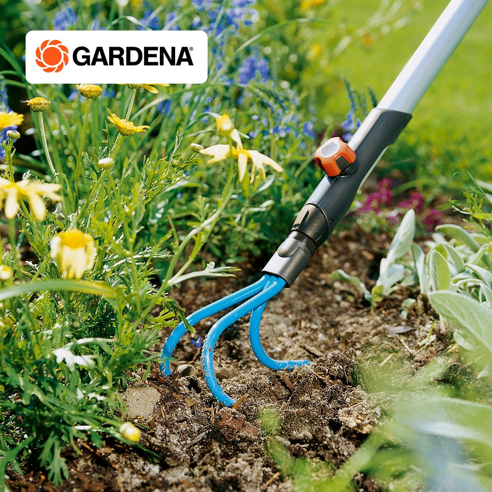 The GARDENA combisystem Grubber has three sturdy prongs optimally suited for loosening and aerating soil while sparing roots. The Grubber has a working width of 9 cm and is best-suited for also stony ground and close-set plants. The product is suitable for all GARDENA combisystem handles, whereby GARDENA recommends a handle length of 130 cm, depending on body height.