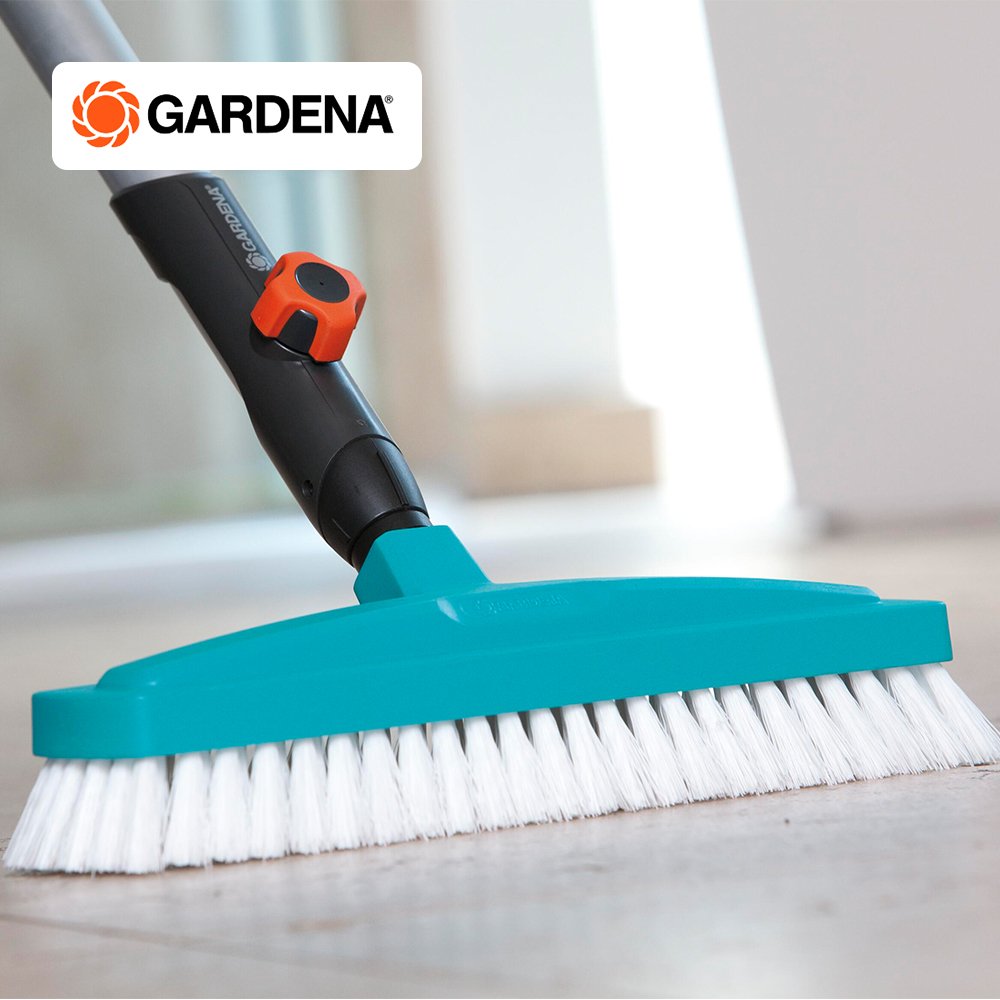 The GARDENA combisystem Scrubbing Brush is ideal for use in the home. Thanks to highly flexible bristles made of polypropylene and a working width of 30 cm, plus a head made of impact-resistant plastic, the Scrubbing Brush is suited even for trodden-in dirt or moist material. Practical: the edges are rounded to spare furniture. The Scrubbing Brush is suitable for all GARDENA combisystem handles, whereby GARDENA recommends a handle length of 130 or 150 cm, depending on body height.