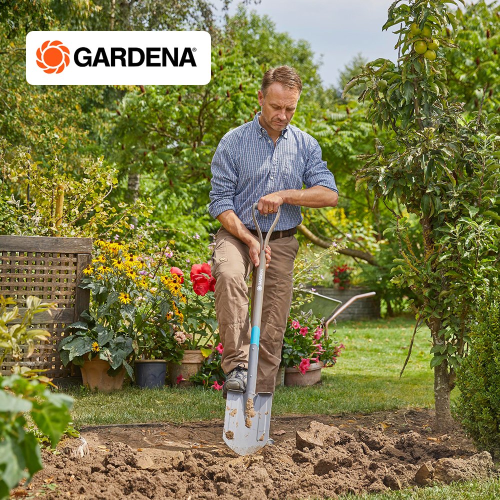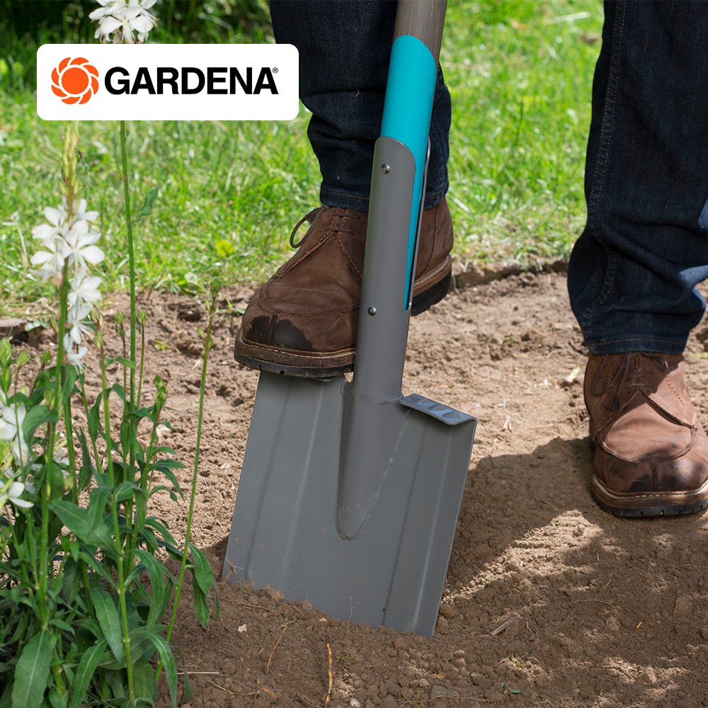 The GARDENA NatureLine Spade is a sturdy tool for digging and for lifting out, loosening and transferring soil. The shaped shaft made of high-quality ashwood (FSC® certified) with a D handle lies well in the hand and guarantees an ergonomic working posture. The sharp spade blade consists of hardened quality steel. The extra-large foot-rest with special profile guarantees a firm hold when digging into the ground, and serves the optimum transferral of force onto the spade.