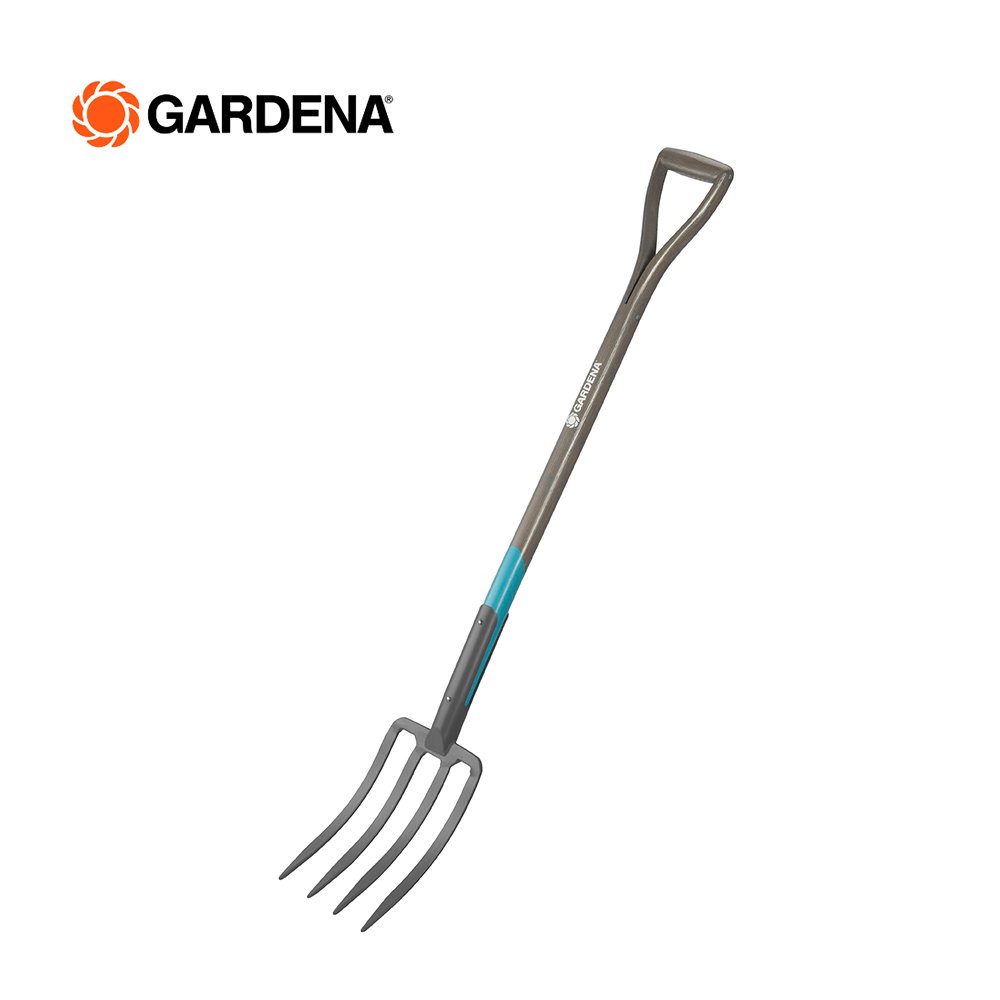 The GARDENA NatureLine Spading Fork is a sturdy tool for digging without damaging the roots, and for lifting and loosening earth, in particular in planted areas. The shaped shaft made of high-quality ashwood (FSC® certified) with a D handle lies well in the hand and guarantees an ergonomic working posture. The sturdy long tines consist of hardened quality steel.