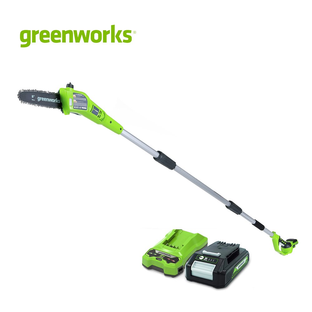 GREENWORKS POLE SAW 24V INCLUDING BATTERY AND FAST CHARGER