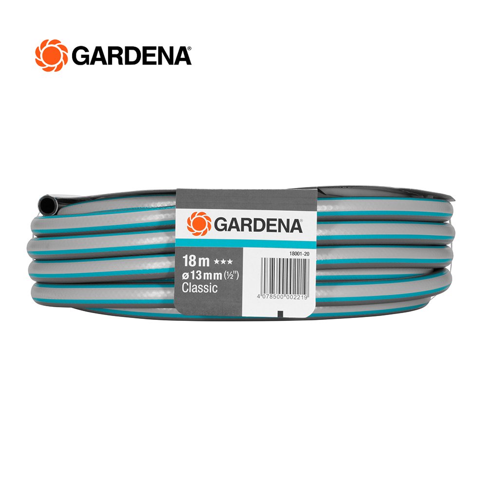 The pressure-resistant GARDENA Classic Hose, which keeps its shape through the use of high-quality textile, is free of harmful plasticizers (phthalates) and heavy metals, and of course UV-resistant. If required, it can be systematically supplemented with the Original GARDENA System Fittings and connecting devices. These are the perfect prerequisites for easy and flexible use in your garden. Burst pressure: 22 bar.