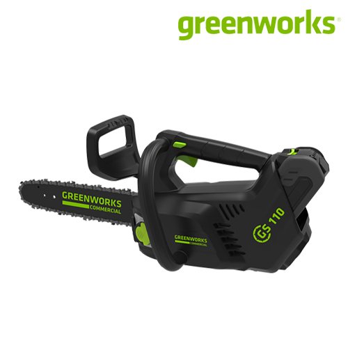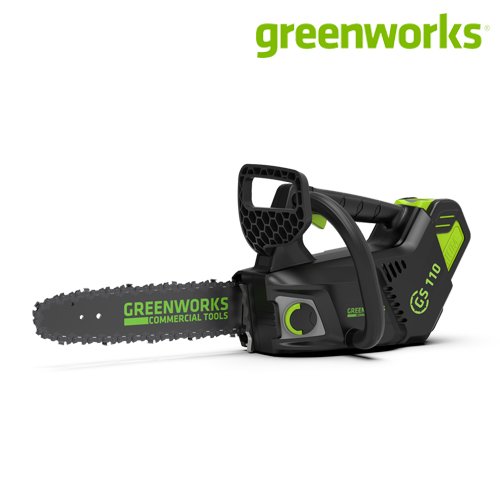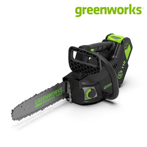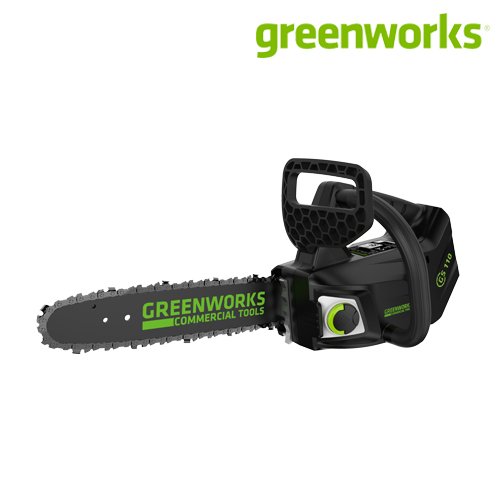 Greenworks Chainsaw 40V Top Handle Bare Tool Lightweight, easy operation and convenience are features of Greenworks’ top handle chainsaw. It has a powerful brushless motor; high chain speed and low vibrations which allows for flexible handling. When needed, operation with one hand is very forgiving. Thanks to its well thought-out and compact design it provides maximum control and outstanding stamina. This tool is phenomenal for domestic woodcutting since it allows you to work without disturbing your neighbours.