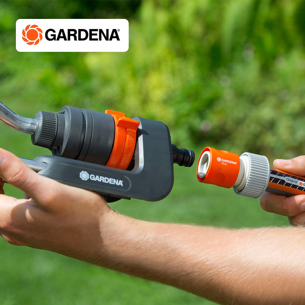 The GARDENA Waterstop Connector is ideal in combination with longer hoses or pumps. It serves as a connector for the accessory end of the hose. Disconnect and the water stops automatically, connect and the water flows.