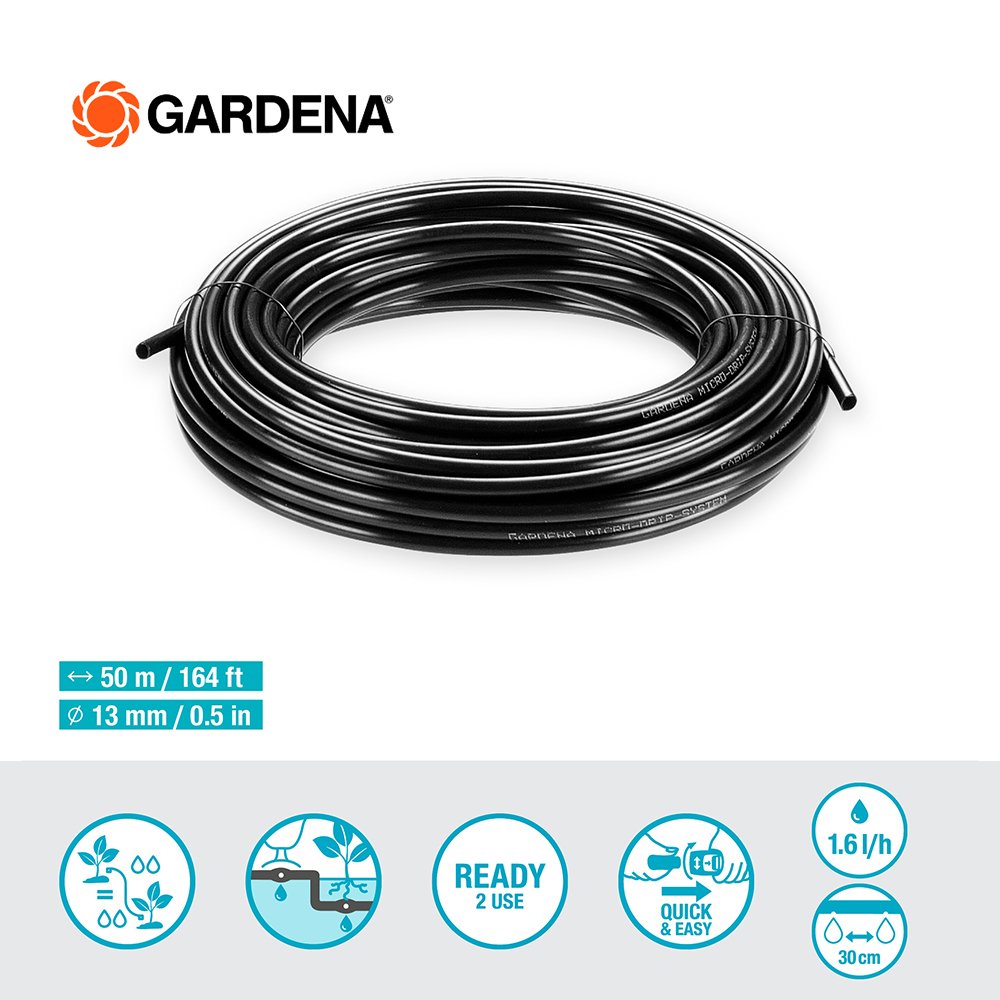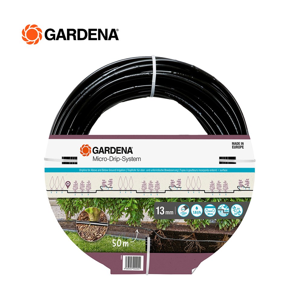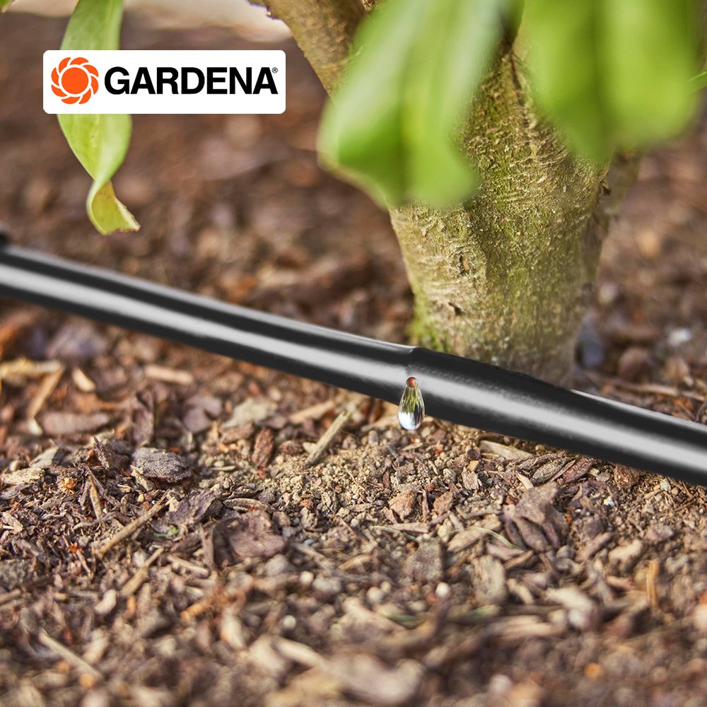 สายน้ำหยด GARDENA 1.6 l/h ยาว 50 ม. สำหรับติดตั้งบนดินและใต้ดิน พร้อมรูน้ำหยดในสาย เหมาะสำหรับการรดน้ำแบบประหยัดน้ำ สำหรับแถวต้นไม้ของคุณ เช่น พุ่มไม้ ไม้พุ่ม และไม้พุ่ม สายน้ำหยดที่วางได้ง่ายนี้เป็นชุดที่ยอดเยี่ยมเมื่อใช้ร่วมกับชุด Micro-Drip-Irrigation สำหรับพุ่มไม้และไม้พุ่ม (รหัสสินค้า 13500-20 และ 13501-20) คุณสามารถเลือกได้ว่าต้องการวางสายน้ำหยดบนดินหรือใต้ดินซึ่งมองไม่เห็น หากวางใต้ดินจะไม่ถูกอุดตันเนื่องจากฟังก์ชันทำความสะอาดตัวเองพิเศษพร้อมเทคโนโลยีเขาวงกตและแผ่นป้องกันราก มีรูน้ำหยดติดตั้งอยู่ในสายน้ำทุกๆ 30 ซม. ซึ่งปล่อยน้ำ 1.6 ลิตร/ชั่วโมงอย่างต่อเนื่อง ต้นไม้ของคุณจะได้รับการรดน้ำอย่างสม่ำเสมอ รูน้ำหยดมีการปรับแรงดัน จึงสามารถรับมือกับความแตกต่างของระดับความสูง เช่น บนทางลาดได้ การแปลงหรือขยายระบบ Micro-Drip ทำได้อย่างรวดเร็วและง่ายดายด้วยข้อต่อ 13 มม. ที่มีเทคโนโลยีการเชื่อมต่อ Quick & Easy ที่จดสิทธิบัตร การนำกลับมาใช้ใหม่ได้อย่างชาญฉลาดของส่วนประกอบ MDS ทำให้ระบบทั้งหมดมีความยั่งยืน แม้หลังจากใช้งานซ้ำหลายครั้งก็ไม่เกิดความเสียหาย ระบบ Micro-Drip ดูแลต้นไม้ของคุณและทุกหยดที่ล้ำค่า การรดน้ำที่ง่าย ประหยัดน้ำและเวลา