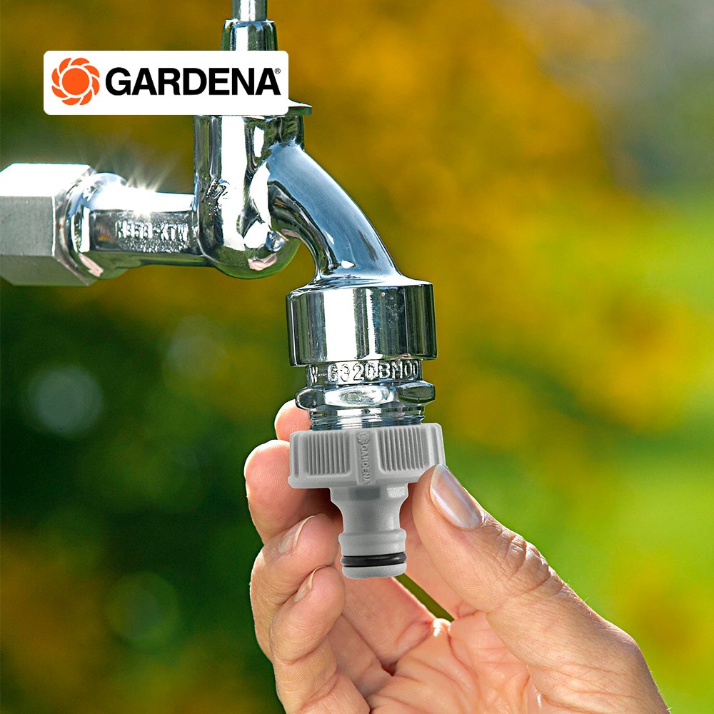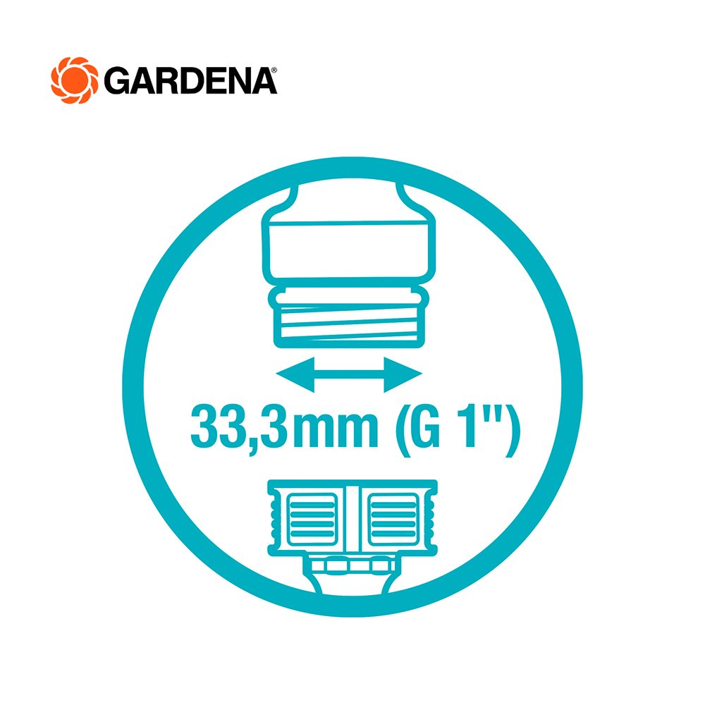 GARDENA ข้อต่อก๊อกน้ำ ขนาดเกลียว 1” (33.3 มม) ข้อต่อก๊อกน้ำ ที่เหมาะสำหรับใช้งานกับก๊อกน้ำแบบมีเกลียว สามารถเชื่อมต่อกับก๊อกน้ำได้อย่างแน่นหนา มาพร้อมกับฟังก์ชัน Anti-Splash(ป้องกันน้ำกระเด็น) ที่ใช้งานได้จริง รูปทรงออกแบบมาเป็นพิเศษ ทนต่อความเย็น และทนทานเป็นพิเศษ สินค้านำเข้าจากเยอรมนี