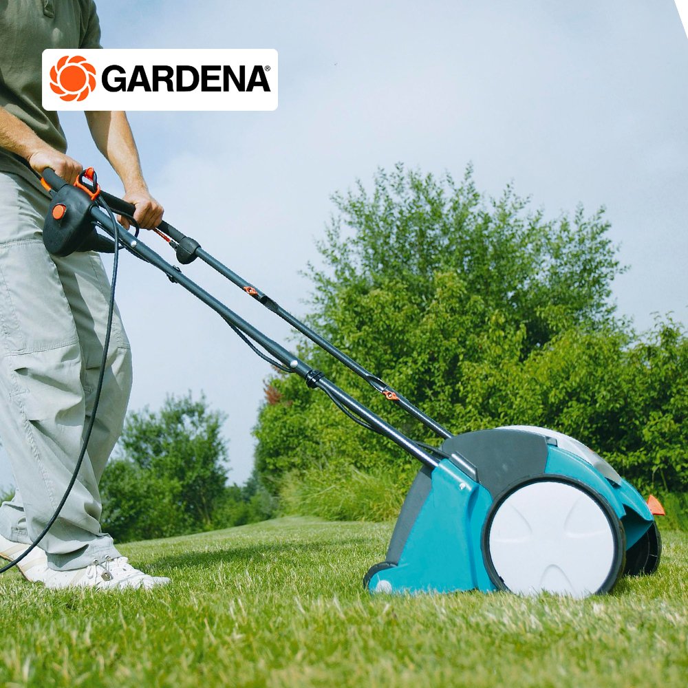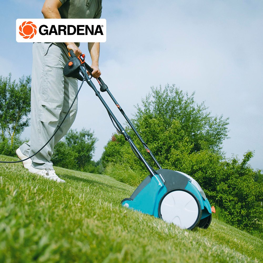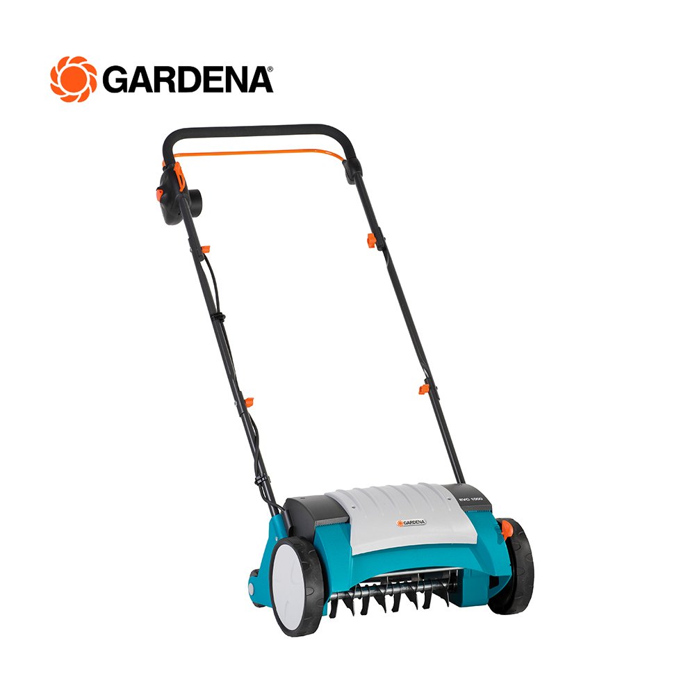 Gardena เครื่องเติมอากาศสนามหญ้า EVC 1000 คุณสามารถกำจัดตะไคร่น้ำ ใบหญ้า และวัชพืชได้อย่างง่ายดาย เครื่องจะช่วยปรับปรุงการดูดซับอากาศ น้ำ และสารอาหาร ด้วยใบมีดที่คมกริบซึ่งทำจากสแตนเลสชุบสังกะสีแบบแข็งพิเศษ ใช้เจาะลงบนสนามหญ้าช่วยเพิ่มอาการในดิน อีกทั้งช่วยกำจัดหญ้าที่แห้งและหญ้าที่ตายแล้วออกจากดิน ใบมีดสำหรับเจาะสามารถปรับระดับได้อย่างง่ายดาย