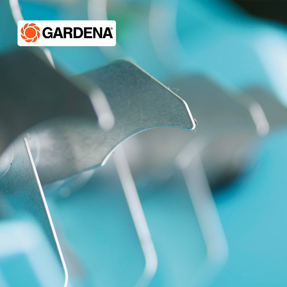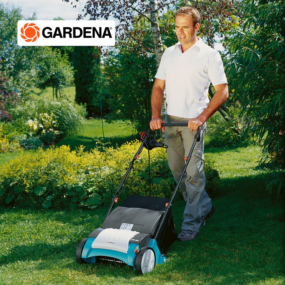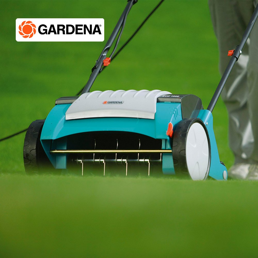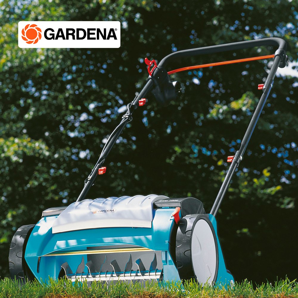 Gardena เครื่องเติมอากาศสนามหญ้า EVC 1000 คุณสามารถกำจัดตะไคร่น้ำ ใบหญ้า และวัชพืชได้อย่างง่ายดาย เครื่องจะช่วยปรับปรุงการดูดซับอากาศ น้ำ และสารอาหาร ด้วยใบมีดที่คมกริบซึ่งทำจากสแตนเลสชุบสังกะสีแบบแข็งพิเศษ ใช้เจาะลงบนสนามหญ้าช่วยเพิ่มอาการในดิน อีกทั้งช่วยกำจัดหญ้าที่แห้งและหญ้าที่ตายแล้วออกจากดิน ใบมีดสำหรับเจาะสามารถปรับระดับได้อย่างง่ายดาย