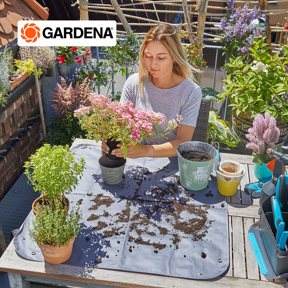 ด้วย GARDENA ผ้าใบรองทำสวน S (ขนาด 80 x 80 cm) ระเบียงและเฉลียงของคุณจะสะอาดตลอดการปลูก ผ้าใบรองทำสวนถูกกระจายไปทั่วโต๊ะ เครื่องมือการทำงานที่สำคัญทั้งหมดของคุณเช่น กระถางเกรียงมือและดินปลูกสามารถเก็บไว้ในนั้นได้และคุณสามารถปลูกและลงบนผ้าใบรองทำสวนได้ ด้วยวิธีนี้พื้นผิวดินจะได้รับการปกป้องและสามารถรวบรวมดินและชิ้นส่วนพืชที่หลุดออกระหว่างการปลูกและกำจัดได้ง่ายในภายหลัง Planting Mat ประกอบด้วยผ้าสิ่งทอที่กันน้ำทำความสะอาดง่ายและสามารถพับเก็บได้เพื่อประหยัดพื้นที่หลังการใช้งาน